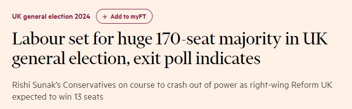 出口民调显示,斯塔默公开宣称的促进增长、支持商业的议程已获得成功,工党逆国际政治趋势而行。极右翼政党在最近的欧洲和法国议会选举中表现强劲,而在美国,唐纳德·特朗普在总统竞选民调中领先。